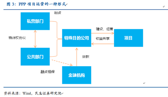 PPP模式(Public-Private-Partnership,即“公共部門-私人企業(yè)-合作”的模式)指的是公共部門通過(guò)與私人部門建立伙伴關(guān)系,共同提供公共產(chǎn)品或服務(wù),是20世紀(jì)90年代后出現(xiàn)的一種新的融資模式。 PPP模式的一個(gè)典型結(jié)構(gòu)是公共部門與中標(biāo)單位組成的特殊目的公司簽訂特許合同,由特殊目的公司負(fù)責(zé)融資、建設(shè)及經(jīng)營(yíng)。這種融資形式的實(shí)質(zhì)是政府通過(guò)給予私營(yíng)公司長(zhǎng)期的特許經(jīng)營(yíng)權(quán)和收益權(quán)來(lái)?yè)Q取基礎(chǔ)設(shè)施建設(shè),以解決政府的財(cái)政困境。 ![]()